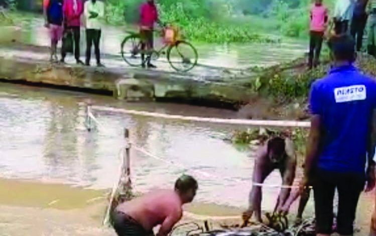 आलमपुर। आलमपुर क्षेत्र में तेज बारिश के कारण नदी-नाले तेज उफान पर है और सोनभद्रिका नदी भी तेज बहाव के साथ चल रही है, इसी के कारण आलमपुर से रतनपुरा जाने वाले मार्ग पर आवागमन पूर्णता बंद है। नदी पर नवीन पुल निर्माण के चलते बगल से एक रपटा पुल का निर्माण किया गया था, जिससे वाहनों का आवागमन सुचारू रूप से चल सके। गुरुवार से हो रही तेज बारिश के कारण आलमपुर में सोनभद्रिका नदी उफान पर है, रविवार की सुबह एक बाइक सवार व्यक्ति पुल पार कर रहा था, जो पानी का तेज बहाव होने के कारण वह अपना संतुलन खो बैठा।