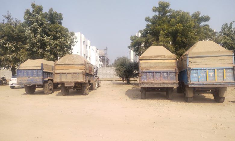देहात पुलिस ने अवैध रेत पर परिवहन करने वाले 4 ट्रैक्टर ट्रॉलियों को पकड़ा।