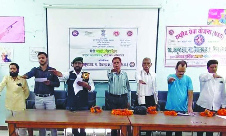 भिण्ड। आजादी के अमृत महोत्सव के तहत राष्ट्रीय सेवा योजना के तत्वावधान में शहर के शा. उत्कृष्ट विद्यालय क्र.एक की एनएसएस इकाई द्वारा मेरी माटी मेरा देश के अंतर्गत मिट्टी को नमन, वीरों का वंदन के तहत कार्यक्रम का आयोजन किया गया। बतौर मुख्य अतिथि के रूप में एनवाईके के जिला समन्वयक आशुतोष साहू, एनएसएस के जिला संगठक डॉ. आरए शर्मा, जन अभियान परिषद के जिला समन्वयक डॉ. शिवप्रताप सिंह भदौरिया, प्राचार्य पीएस चौहान, भूपेन्द्र कुशवाह, पार्षद प्रतिनिधि भूरे यादव, राहुल, सुनील कौशल मंचासीन रहे। संचालन वॉलियंटियर सोनू बघेल, अंशिका मिश्रा और गौरी त्रिपाठी ने संयुक्त रूप से किया। स्वागत भाषण प्राचार्य पीएस चौहान ने दिया और आभार एनएसएस कार्यक्रम अधिकारी डॉ. धीरज सिंह गुर्जर ने व्यक्त किया।
