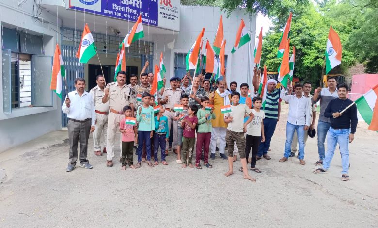 भिंड पुलिस अधीक्षक मनीष खत्री , उप पुलिस अधीक्षक के नेतृत्व में ऊमरी थाना प्रभारी रविंद्र शर्मा के मार्गदर्शन में पुलिस थाना ऊमरी तथा चौकी अकोडा के अंतर्गत तिरंगा यात्रा का आयोजन किया गया ।