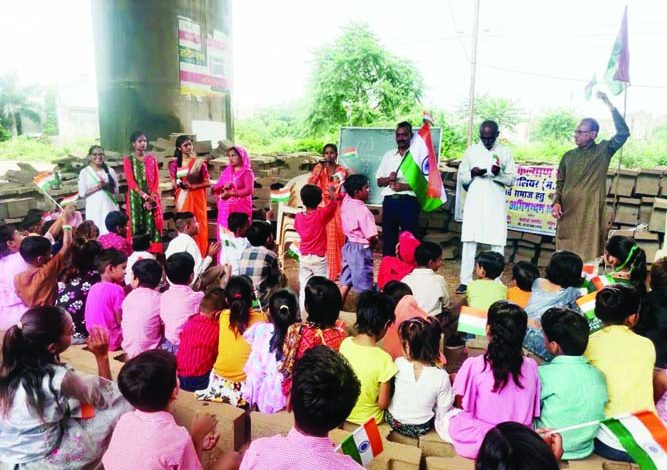 ग्वालियर। निम्न आय वर्ग एवं झुग्गी झोपड़ी में रहने वाले बच्चों के लिए चल रही सेवार्थ जन कल्याण समिति के अंतर्गत सभी सेवार्थ पाठशाला में शहर के गणमान्य नागरिक, बच्चों, अतिथियों की उपस्थिति में 77वां स्वतंत्रता दिवस समारोह जोर-शोर से मनाया गया। सिंधिया नगर में चल रही पाठशाला में मुख्य अतिथि वरिष्ठ चार्टर्ड अकाउण्टेंट प्रमोद कुमार गुप्ता, मोनी बाबा आश्रम में चल ही पाठशाला में मुख्य अतिथि समाजसेवी श्रीमती शगुन वैश्य उपस्थित रहीं। विवेकानंद नीडम के पास वाली शाखा पर लगभग 200 बच्चे, मोनी बाबा एवं नाके वाली पाठशाला के मिलाकर 80 बच्चे उपस्थित रहे। बेटी बचाओ चौराहे वाली पाठशाला पर 20 बच्चे कार्यक्रम में शामिल हुए।