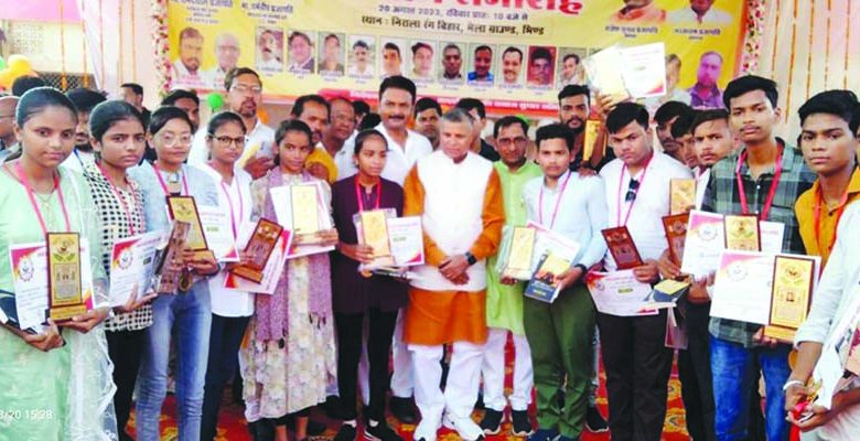 भिण्ड। आदर्श प्रजापति समाज के प्रतिभाशाली बच्चों का सम्मान करना बडे गौरव की बात है। बच्चे भगवान का दूसरा रूप होते हैं, यह सम्मान उनका हौसला बढाता है और बच्चों के मन में अच्छा करने की भावना जागृत होती है। यह बात शहर के निराला रंग बिहार में आयोजित आदर्श प्रजापति समाज सुधार समिति के द्वारा आयोजित मेधावी छात्र-छात्राओं के सम्मान समारोह में मुख्य अतिथि उप्र सरकार के कारावास एवं होमगार्ड मंत्री धर्मवीर प्रजापति ने कही। कार्यक्रम में मंचासीन अतिथियों में पूर्व सांसद डॉ. रामलखन सिंह कुशवाह, प्रहलाद प्रजापति, विधायक प्रतिनिधि सुनील बाल्मीकि, शिवप्रसाद गोला प्रजापति, ओमप्रकाश अग्रवाल बाबूजी, डॉ. रामबिहारी प्रजापति, रमेश प्रजापति, विद्याराम प्रजापति, दिलीप प्रजापति, जगराम प्रजापति, मुन्नीलाल प्रजापति, सोनीराम प्रजापति, भैयालाल प्रजापति, हरज्ञान प्रजापति, रामौतार प्रजापति, रामबाबू प्रजापति, दिनेश प्रजापति, संतोष प्रजापति, पूरन प्रजापति, कल्याण प्रजापति ने मुख्य अतिथि के साथ दीप प्रज्वलन कर कार्यक्रम की शुरुआत की।