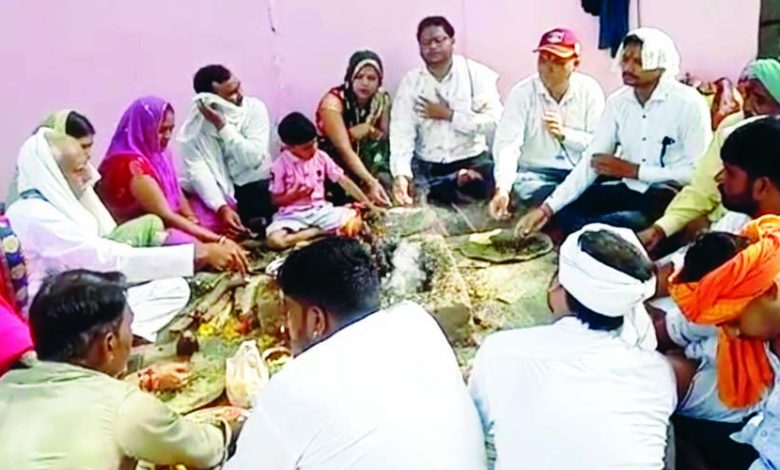 नेताओं की सदबुद्धि हेतु समाजसेवियों ने पावई माता मन्दिर पर किया हवन