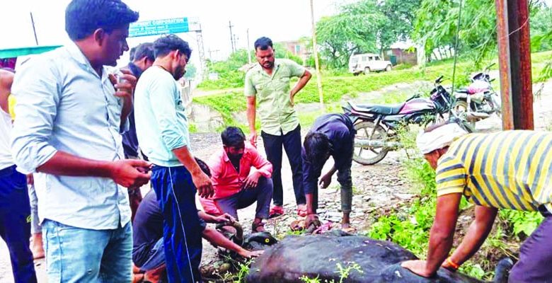 नाली में फंसे गौवंश को सुरक्षित निकाल कर भिजवाया गौशाला