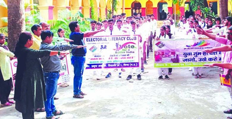 इलेक्टोरल लिटरेसी क्लब और एनएसएस के छात्रों ने निकाली मतदाता जागरुकता रैली