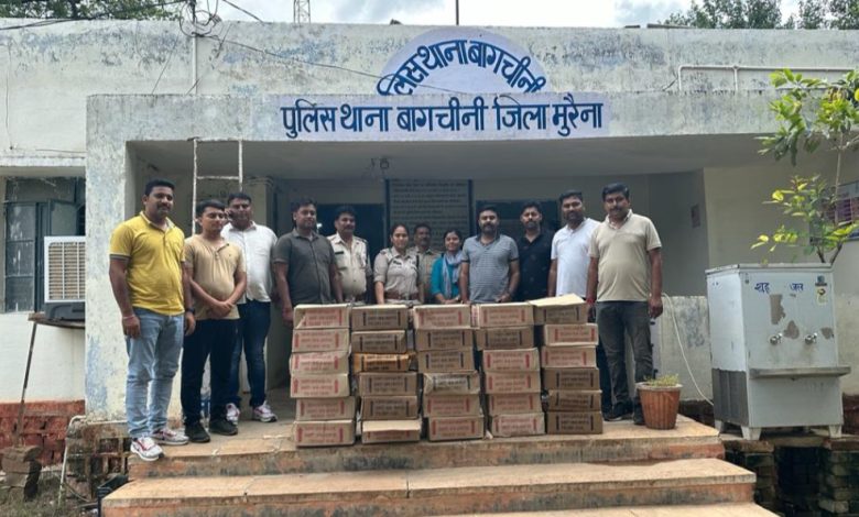 आगामी विधानसभा चुनाव 2023 को दृष्टिगत रखते हुए पुलिस अधीक्षक मुरैना शैलेन्द्र सिंह चौहान द्वारा अवैध हथियार तस्करों, अवैध शराब – मादक पदार्थों की तस्करी एवं बिक्री ईनामी फरारी बदमाशों एवं स्थायी वारंटियों की धरपकड़ हेतु संपूर्ण मुरैना जिले में विशेष अभियान संचालित कराया जा रहा है। उक्त अभियान के तहत अति. पुलिस अधीक्षक मुरैना डॉ. अरविन्द सिंह ठाकुर के निर्देशन में एवं रवि सोनेर, प्रभारी एसडीओपी जौरा के मार्गदर्शन में आज दिनाँक 15.09.23 को इलाका भ्रमण के दौरान जरिये मुखविर सूचना प्राप्त हुई उक्त सूचना की तस्दीक हेतु थाना बागचोनी पुलिस ग्राम चचिहा पहुंची, ग्राम चचिहा में आरोपी के घर की तलाशी के दौरान अवैध रुप से बिक्री करने के लिये रखी गई 12 पेटी 30 क्वार्टर देशी प्लेन मदिरा व 17 पेटी देशी लाल मशाला की रखा मिली, प्रत्येक पेटी में 50-50 क्वाटर इस प्रकार कुल 1480 क्वाटर (कुल मात्रा 264.4 बल्क लीटर) जिनकी कुल कीमत 97300/- रुपये को जप्त की गई। उक्त आरोपी से शराब रखने के सम्बन्ध में पूछे जाने पर वैध लायसेन्स नहीं होने से आरोपी का उक्त कृत्य धारा 34 (2) आबकारी एक्ट की परिधि के अंतर्गत पाये जाने से रूबरू पंचान अवैध शराब जप्त कर पुलिस कब्जे लिया जाकर जमा मालखाना की गई वापसी पर प्रकरण कायम कर विवेचना में लिया गया।