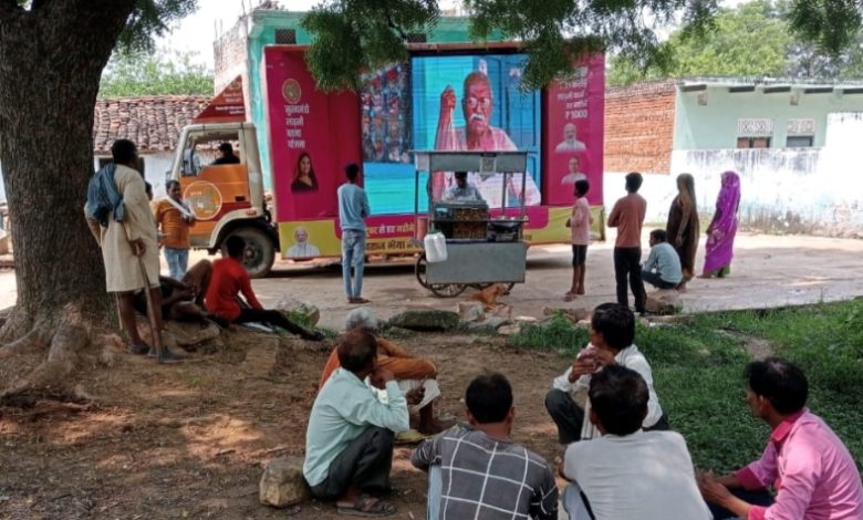 शासन की जनहितकारी योजनाओं की जानकारी दे रहे विकास रथ। एलईडी के माध्यम से हो रहा योजनाओं का प्रचार-प्रसार।