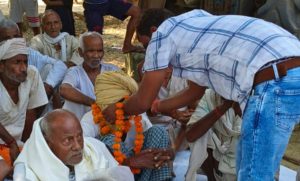 खेरा श्यामपुरा सरपंच ने 100 से अधिक बुजुर्गों का सॉल श्रीफल से किया सम्मान।