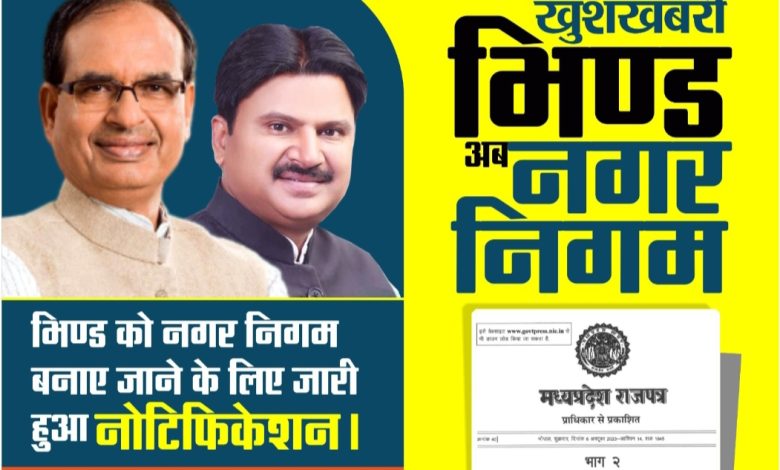 मध्यप्रदेश सरकार ने भिण्ड नगर पालिका को नगर निगम बनाने के लिए जारी किया नोटिफिकेशन।