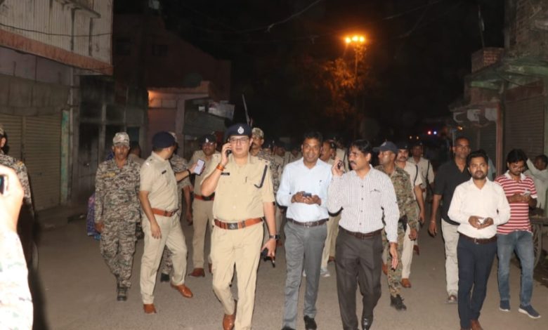 कानून व्यवस्था और जनता में विश्वास के लिए निकाला फ्लैग मार्च, कलेक्टर, एसपी के नेतृत्व में शहर के मुख्य मार्ग में पैदल भ्रमण किया।