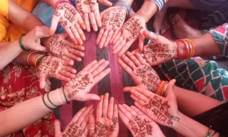 मेंहदी प्रतियोगिता के माध्यम से स्वीप गतिविध के तहत मतदाता जागरूकता संदेश।