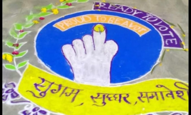 रंगोली बनाकर दिया मतदाता जागरूकता का संदेश, कलेक्टर के निर्देशन में चल रहे मतदाता जागरूकता कार्यक्रम।