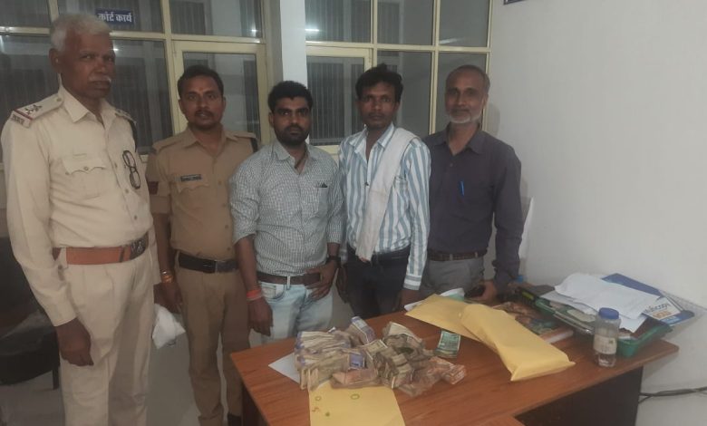 भिण्ड जिले में एफएसटी चेक प्वाइंट पर जप्त की गई 5 लाख रुपए से अधिक की नगदी।