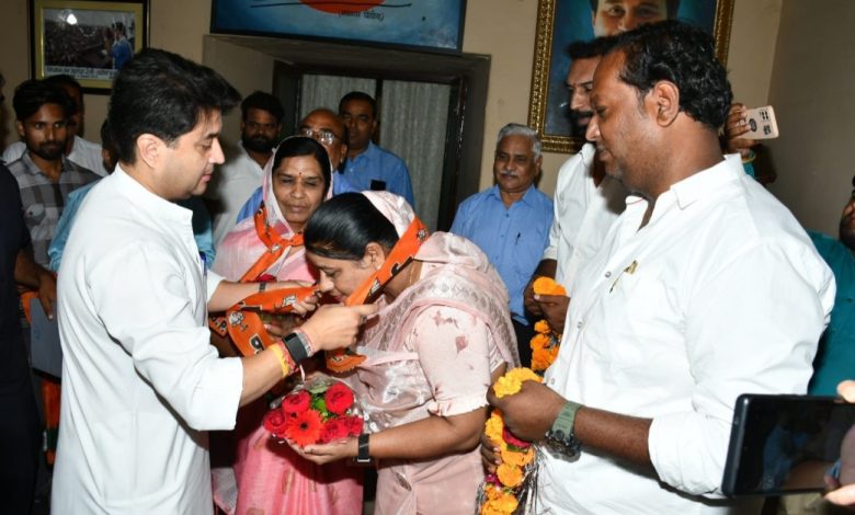 केंद्रीय मंत्री सिंधिया के समक्ष पूर्व में कांग्रेस की प्रत्याशी रहीं कार्यकर्ताओं के साथ भाजपा में शामिल।