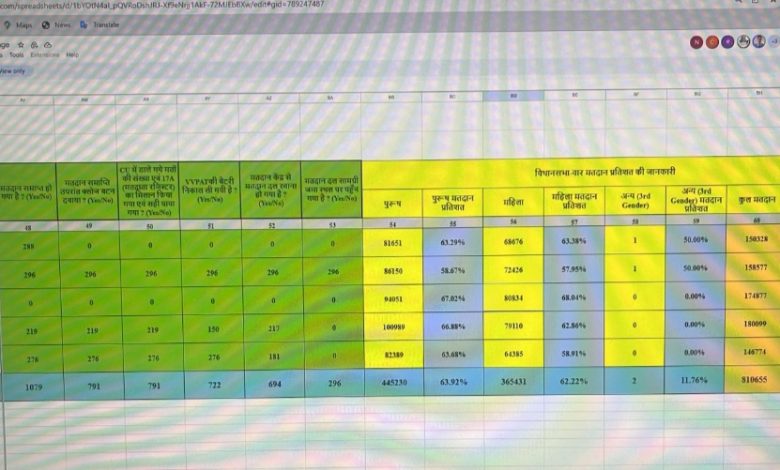 जिले के सभी 1476 मतदान केद्रों पर मतदान शांतिपूर्ण सम्पन्न,सभी विधानसभाओं में 63.14 प्रतिशत मतदान हुआ।