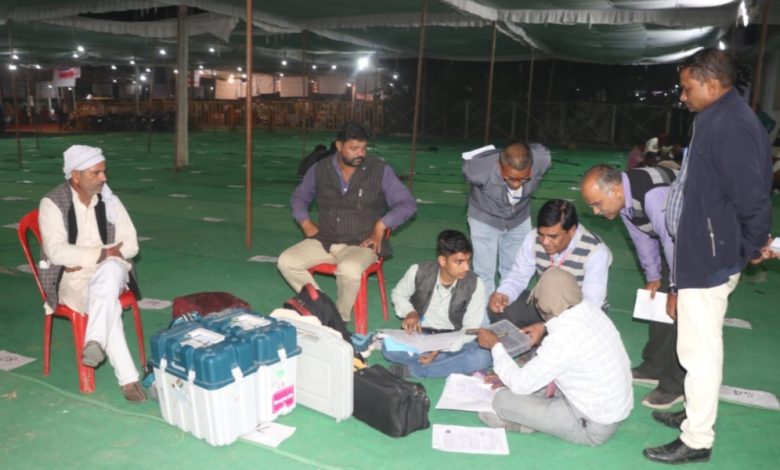 ईवीएम मशीनों को सुरक्षित तरीके से जमा कराने का काम देर रात तक जारी रहा।