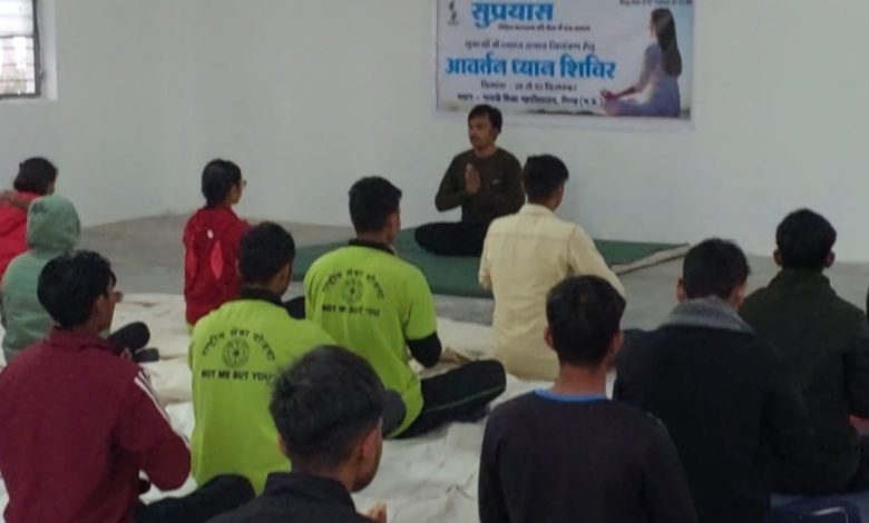 युवाओं में मानसिक तनाव को कम करने के लिए सुप्रयास द्वारा तीन दिवसीय आवर्तन ध्यान शिविर का आयोजन गायत्री शिक्षा महाविद्यालय में दिनांक 28 दिसंबर से लेकर 30 दिसंबर तक शाम को 4:00 बजे से 5:00 बजे तक आयोजित किया गया। शिविर में 50 से अधिक युवक युवतियों ने भाग लेकर आवर्तन ध्यान का अभ्यास किया।डॉ मनोज जैन ने बताया कि