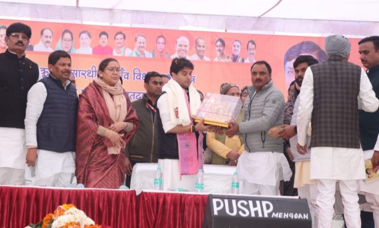 लहार, अमायन एवं भिण्ड में भारत संकल्प यात्रा शिविर में शामिल हुए केंद्रीय मंत्री ज्योतिरादित्य सिंधिया।