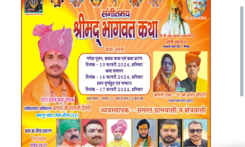 पांडरी बाबा धाम (भिंड) में चल रहा श्रीमद भागवत कथा का आयोजन।